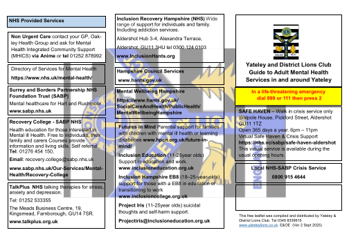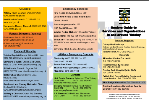 At Yateley & District Lions Club, we’re dedicated to supporting our community whenever we can. While we can’t be everywhere at once, we still want to ensure you have the help you need, even when we’re offline. We’ve put together these downloadable resources to provide guidance and support whenever you need it most.